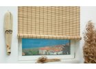 Bambusová rolovací roleta se šňůrovým ovládáním, včetně brzdičky, montážních háčků a prvku na omotání šňůry.